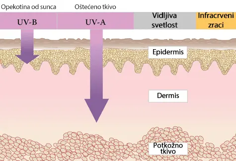 Čak i kada ne dođe do vidljive opekotine, UV zraci mogu izazvati dubinska oštećenja u dermisu koja se pojavljuju tek godinama kasnije.