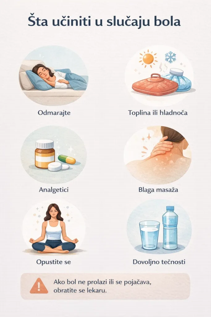 - Lekovi – bez recepta ili na recept (ublažavanje bola, smanjenje upale)